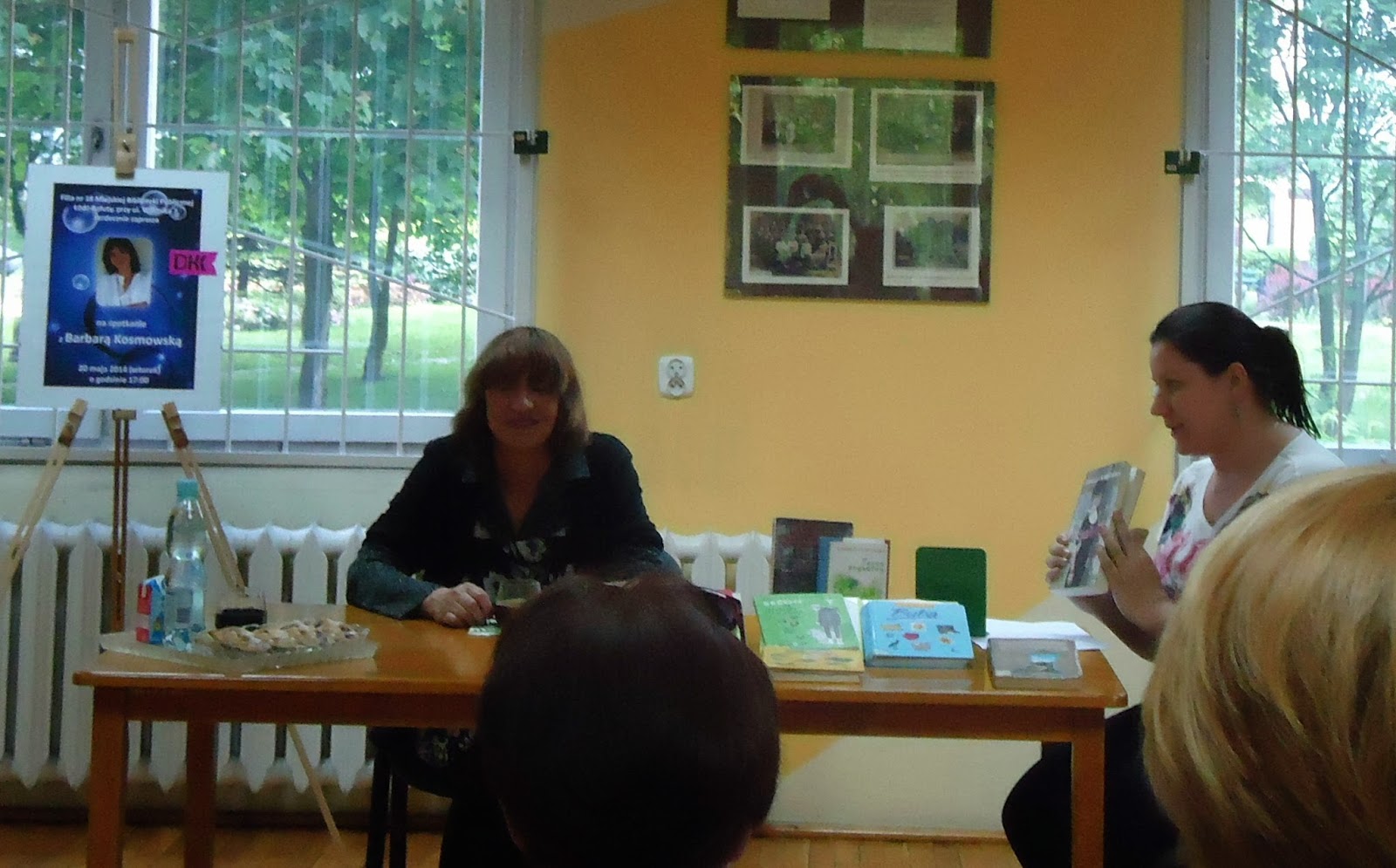 Barbarę Kosmowską - autorkę poczytnych książek dla dzieci, młodzieży i dorosłych. Spotkanie odbyło się w ramach Dyskusyjnego Klubu Książki. Kilka powieści zostało nagrodzonych w konkursach literackich m. in. w konkursie na Dziennik polskiej Bridget Jones (Teren prywatny), czy w Konkursie Literackim im. Astrid Lindgren (Pozłacana rybka).