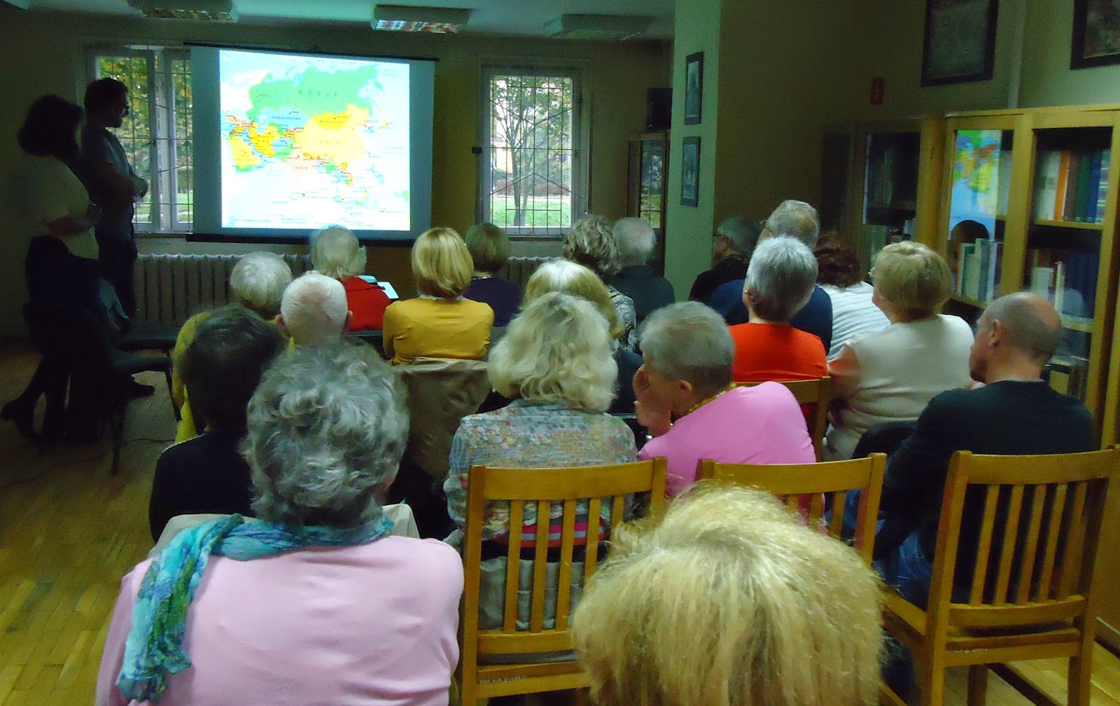 15 października pani Emilia Gruszka wraz z mężem zabrała naszych czytelników w wirtualną podróż do Laosu, która zaczęła się w najbiedniejszych rejonach kraju, a skończyła pośród bogato złoconych świątyń. Ukazane zostały kontrasty między wsią a miastem, lokalne zwyczaje i kultura. Ciekawostką i jednocześnie szokiem była informacja, iż lokalnym przysmakiem są m. in. suszone szczury. Jak się okazało, w poznawaniu obcego kraju przeszkodą nie jest brak znajomości języka mieszkańców - dla chcącego, nic trudnego! Wszędzie przyjmowani byli bardzo ciepło, a na pożegnanie od jednej z rodzin otrzymali podarunki - piękne rękodzieło, które mieli możliwość podziwiać również nasi czytelnicy. Prelekcji towarzyszył pokaz slajdów, dzięki czemu wspólnie mogliśmy delektować się pięknymi widokami, np. kaskadami wodnymi.