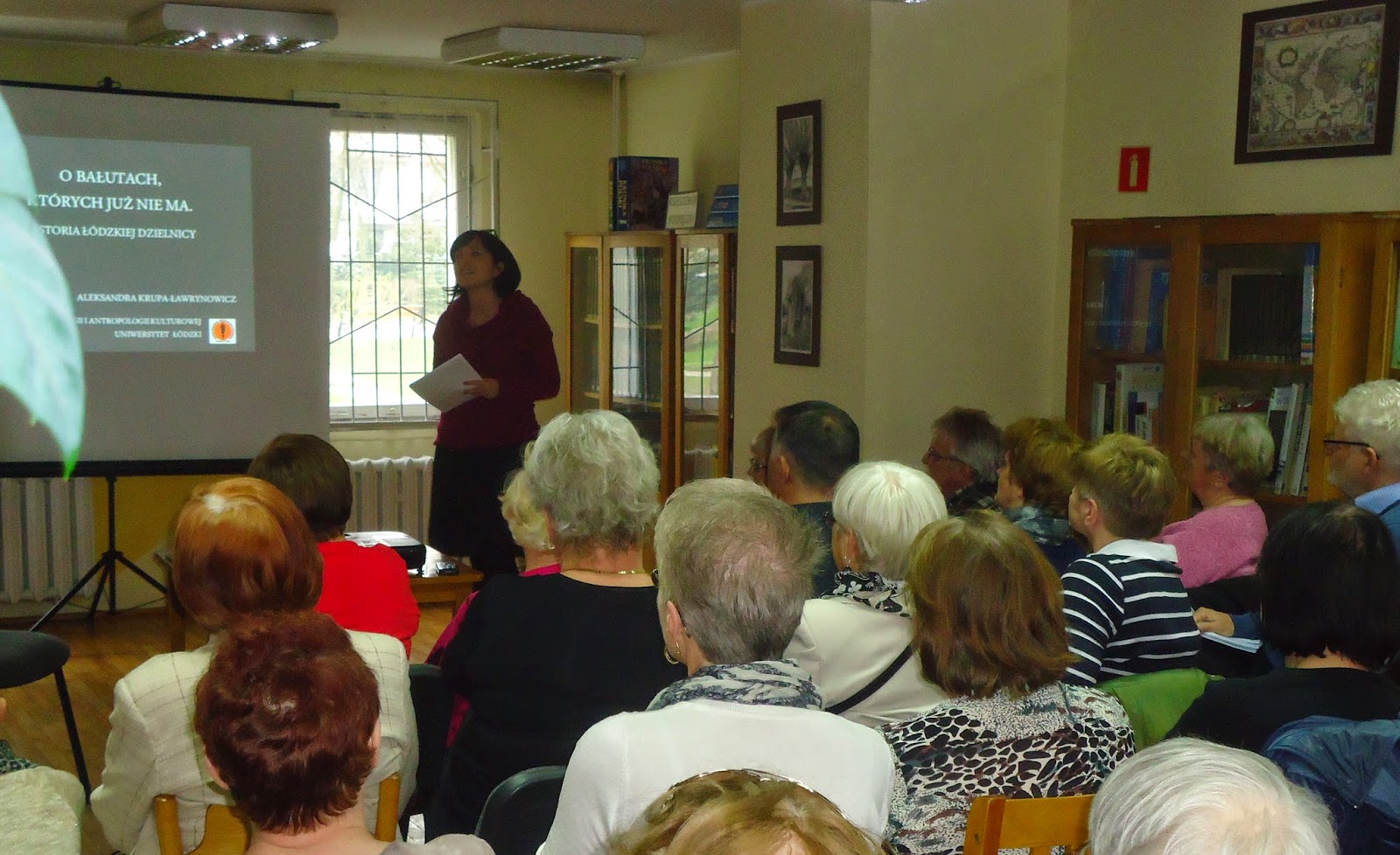 Z okazji 100-lecia przyłączenia Bałut do Łodzi dr Aleksandra Krupa-Ławrynowicz z Zakładu Teorii i Badania Kultury Współczesnej UŁ wygłosiła prelekcję pt.: O Bałutach, których już nie ma. Historia łódzkiej dzielnicy. Czytelnicy, którzy przybyli bardzo licznie mieli możliwość poznania lub przypomnienia sobie historii swojej dzielnicy, obejrzenia starych fotografii na slajdach, wysłuchania wspomnień pisarzy, publicystów i innych mieszkańców Bałut. Prelegentka pokazała również pozostałości dawnych lat, które przetrwały do dziś. Podczas barwnych opowieści przybliżyła nam atmosferę i klimat dawnych Bałut, które obrosły w liczne legendy i stereotypy.