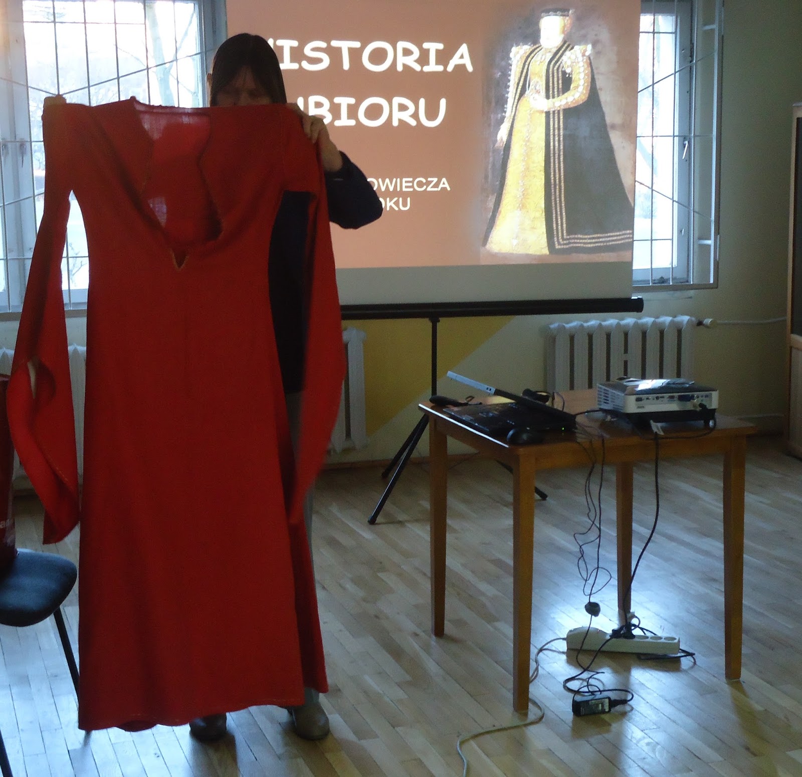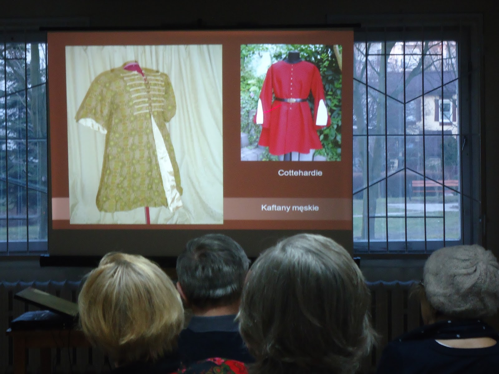 Pani Ewa Kurylak z Muzeum Archeologicznego i Etnograficznego w Łodzi, tym razem zabrała nas w świat mody od średniowiecza do renesansu. Oprócz slajdów słuchacze mogli podziwiać również niektóre stroje z tamtych epok. Niezwykle barwna opowieść, często wzbogacana ciekawostkami historycznymi, tak bardzo spodobała się naszym czytelnikom, że poprosili o kontynuację tematu na kolejnej prelekcji. Serdecznie dziękujemy prelegentce, jak i osobom które przyszły na spotkanie.