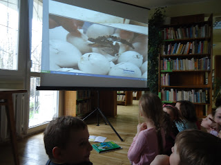 W środę 31 marca, bibliotekę odwiedziła grupa Pasikoników z PM nr 231. Tematem spotkania było JAJKO. Podczas warsztatów wspólnie ustaliliśmy, że nie tylko kury znoszą jajka. Dzieci wymieniły jakie jeszcze zwierzęta znoszą jaja. Wśród nich znalazły się między innymi żaby, węże, krokodyle, muchy czy ryby. Pasikoniki zobaczyły również jak wielkie było jajo dinozaura. Poznaliśmy również z czego zbudowane jest jajo i jak wygląda po rozbiciu skorupki. Na koniec przedszkolaki wykonały rysunek wykluwającego się żółwia.