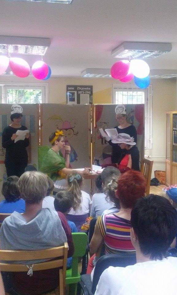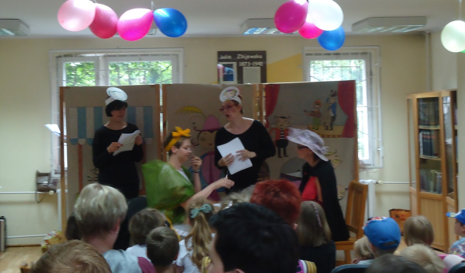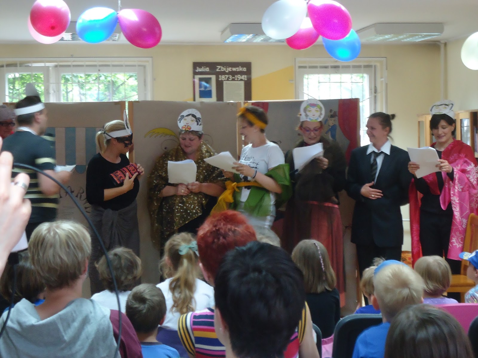 Grupa teatralna z SP nr 184, prowadzona przez Pana Leszka Tomalę, wystawiła w naszej bibliotece przedstawienie pt. "Piotruś Pan". Na spektakl przybyła bardzo liczna grupa widzów, która ledwo mieściła się w naszej czytelni. Publiczności bardzo podobał się występ młodzieży, która była świetnie przygotowana aktorsko. Występujących wielokrotnie nagradzano gromkimi brawami.