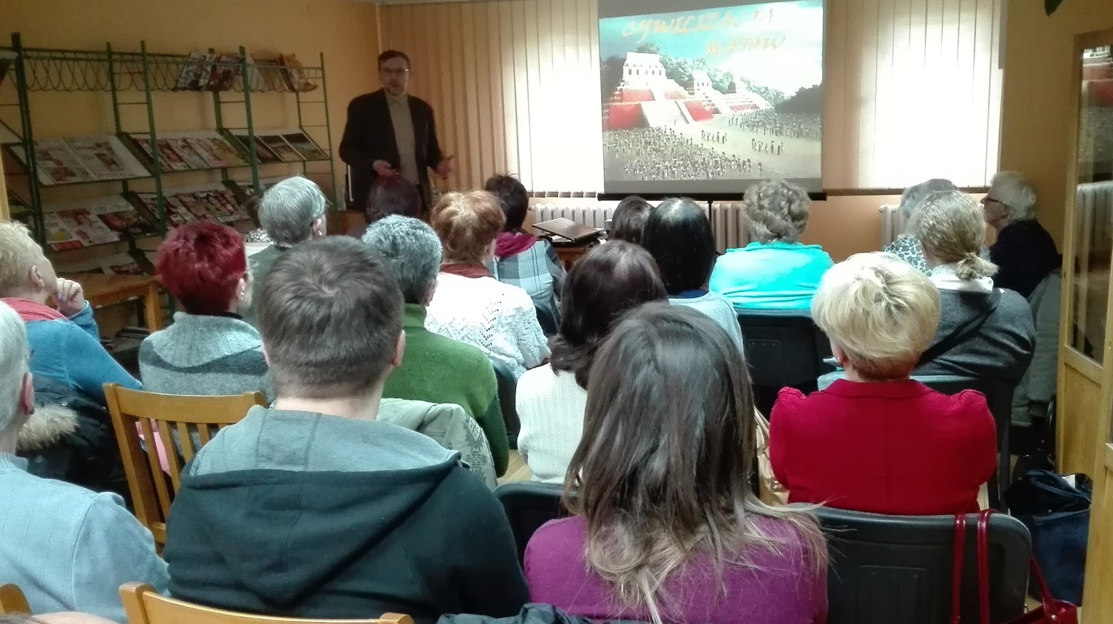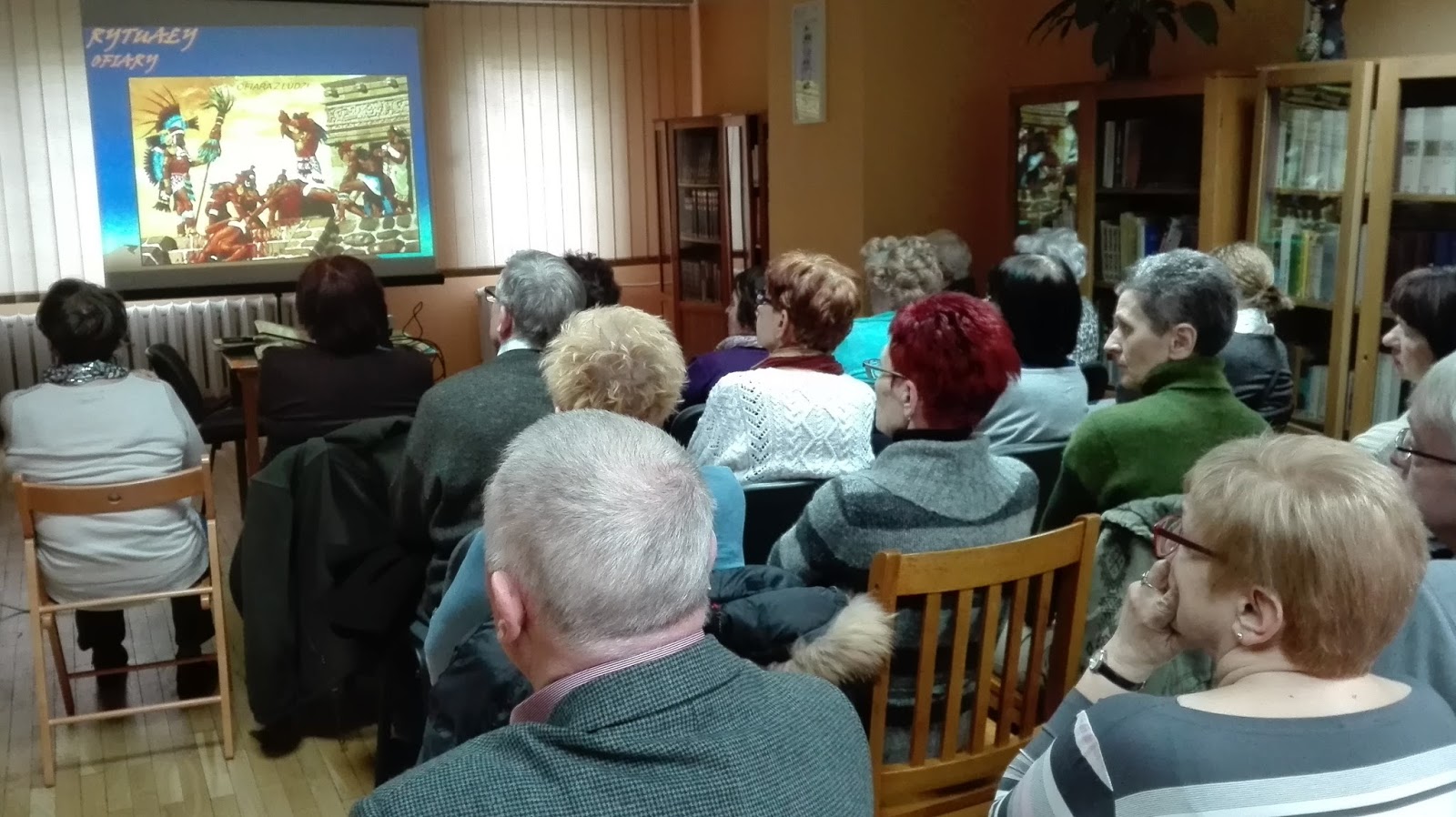 W środę, 19 kwietnia, po raz pierwszy gościliśmy w naszej bibliotece Pana Tomasza Prokopa z Muzeum Archeologicznego i Etnograficznego w Łodzi, który naszym czytelnikom i nie tylko, przybliżył temat kultury Majów. W bardzo przystępny sposób opowiedział o piśmie, cyfrach i liczbach, kalendarzach, religii, rytuałach, budownictwie i sztuce tej cywilizacji. Spotkanie było bogato ilustrowane, dzięki czemu w przypadku liczb i cyfr słuchacze mogli lepiej zrozumieć dwudziestkowy system liczbowy. Temat prelekcji był na tyle ciekawy, że czytelnicy chętnie sięgną po literaturę, aby pogłębić zdobytą już wiedzę.
