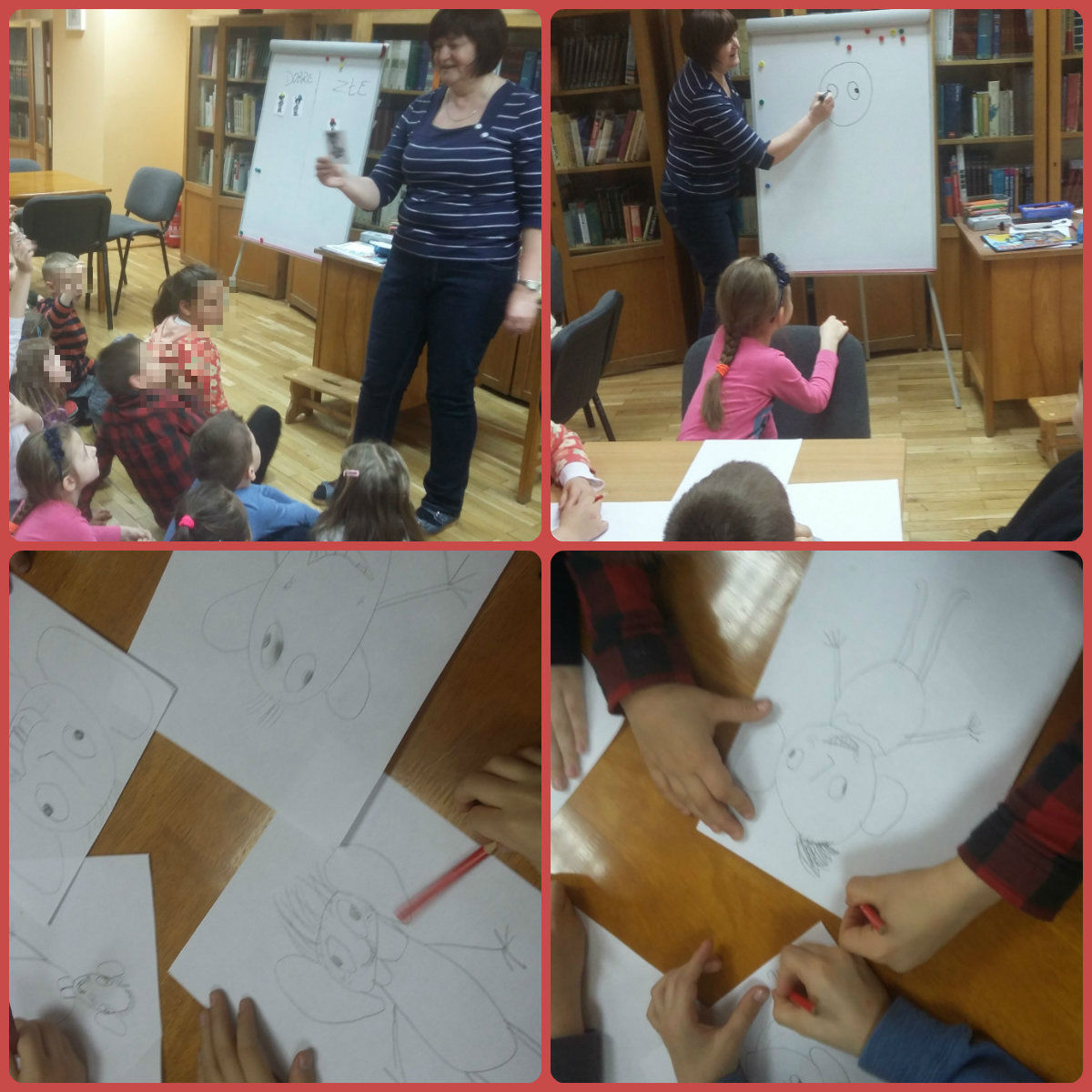 W deszczowe, środowe przedpołudnie grupa VI z PM nr 231 odwiedziła naszą bibliotekę. "Sarenki" brały udział w zajęciach o emocjach. Podczas warsztatów dzieci dowiedziały się jakie emocje są dobre, a jakie złe. Każdy mógł też pokazać swój smutek, radość, złość... Nauczyły się też wierszyka, który rozśmiesza w smutnych chwilach oraz poznały metody ćwiczeń relaksacyjnych, pozwalające rozładować swoje złe emocje.