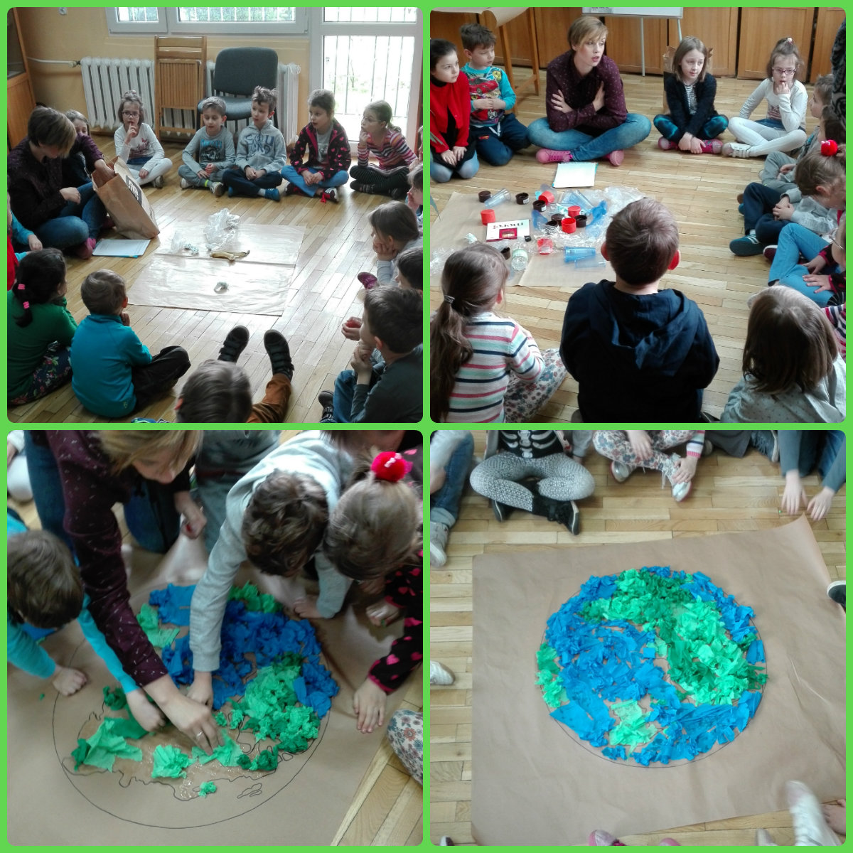 22 kwietnia obchodziliśmy Światowy Dzień Ziemi, z tej okazji grupa z PM nr 97, odwiedziła dziś naszą bibliotekę. Podczas zajęć dzieci dowiedziały się jak ważne dla nas powinno być to święto. Przedszkolaki wysłuchały krótkiej inscenizacji wiersza "Sznurek Jurka" L. Szołdry. Rozmawialiśmy również o tak zwanym bon tonie w przyrodzie. Grupa III doskonale wie jak należy segregować śmieci czy oszczędzać wodę i energię elektryczną. Na zakończenie zajęć wspólnie stworzyliśmy naszą piękną planetę. Dziękujemy za fantastyczne zajęcia :)