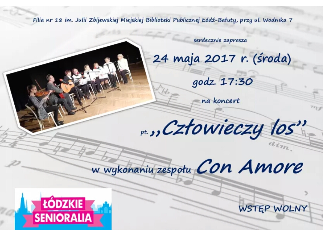 24 maja zespół Con Amore ponownie wystąpił w naszej bibliotece. Tym razem z koncertem pt. "Człowieczy los". W repertuarze nie zabrakło znanych wszystkim piosenek z minionej epoki. Na zakończenie koncertu nie zabrakło bisów oraz wspólnego śpiewania. Dziękujemy za przepiękny i wzruszający występ.