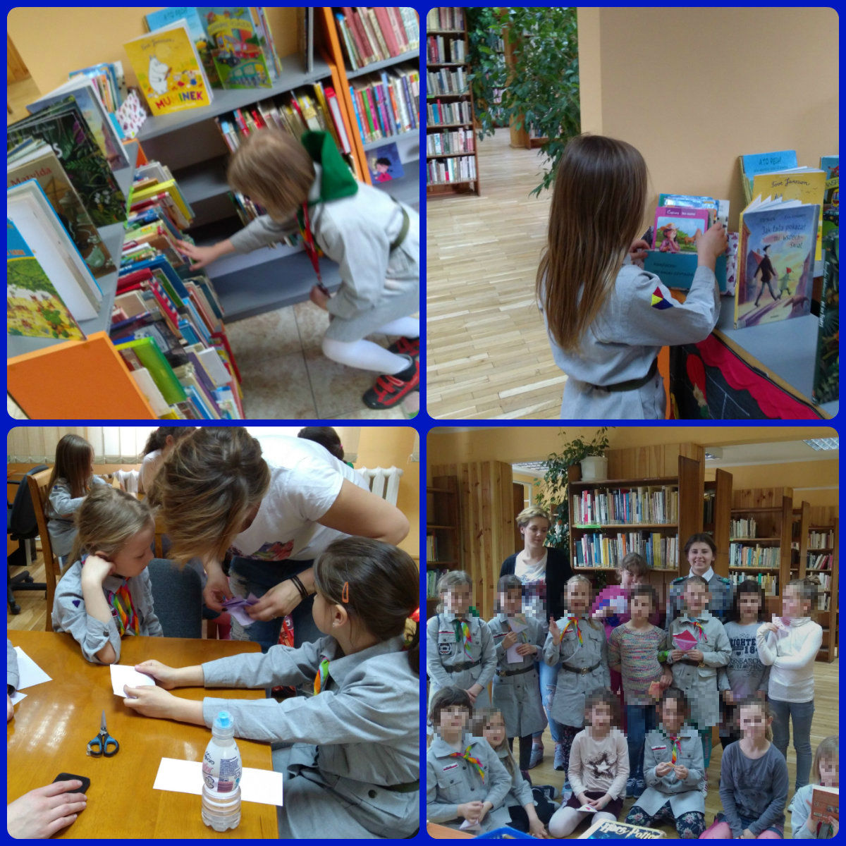 Tydzień Bibliotek zakończyło piątkowe spotkanie z gromadą "Tęczowe Kamyczki". Zuchy zapoznały się z działalnością naszej biblioteki, nauczyły się, jak szukać na półkach wybranej książki. Na zakończenie zajęć wspólnie zrobiliśmy zakładki z origami.