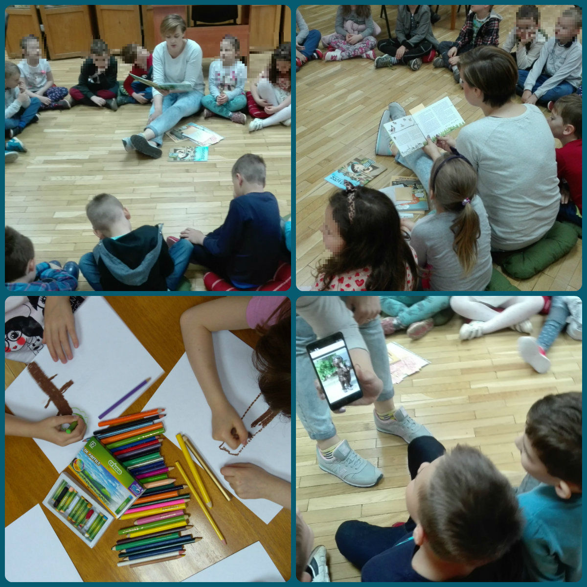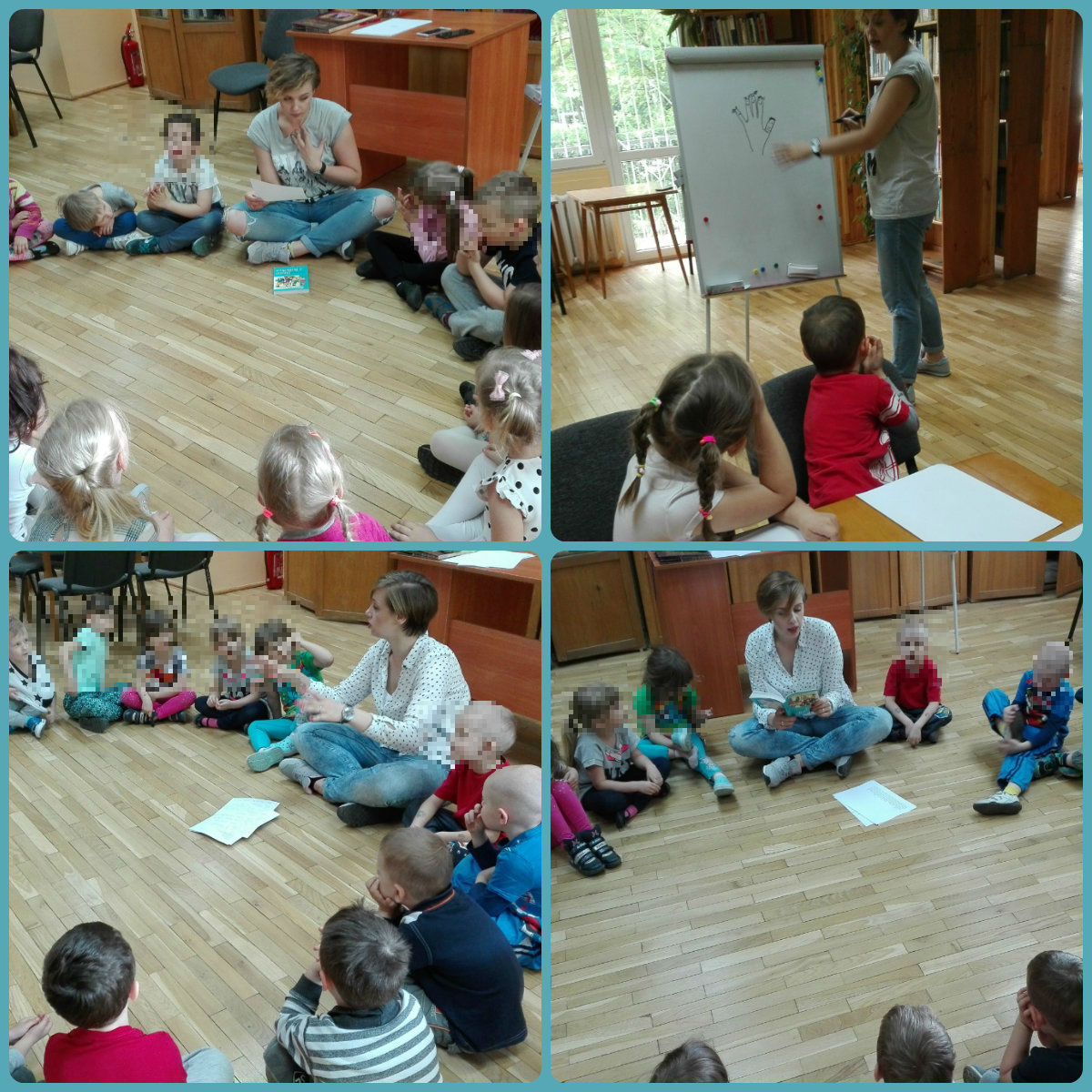 W piątek 26 maja, grupa VI z PM nr 231, odwiedziła naszą bibliotekę. W tym dniu rozmawialiśmy o Dniu Mamy. Każde dziecko opowiedziało o swojej mamie. Najwięcej emocji wzbudziły jednak fragmenty "Naszej Mamy Czarodziejki" Joanny Papuzińskiej. Książka bardzo spodobała się grupie "Jeżyków". Wspólnie też zatańczyliśmy do piosenki o naszych cudownych mamusiach. Na zakończenie zajęć dzieci wykonały laurki dla swoich mam, były to piękne kolorowe kwiaty. Dziękujemy za wspaniałe zajęcia,a wszystkim Mamom życzymy jeszcze raz wszystkiego co najlepsze! :)