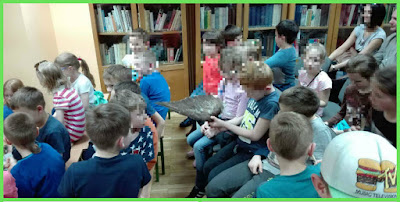 W piątkowe przedpołudnie, naszą bibliotekę odwiedziła grupa VIII z PM nr 231. Tematem naszego spotkania była ochrona przyrody. "Pasikoniki" wysłuchały krótkiej bajki metodą kamishibai, pt. "Dlaczego zwierzaki mieszkają w bloku Maćka?", autorstwa Tomasza Trojanowskiego. Kamishibai ( kami – papier, shibai – sztuka) to tajemnicze słowo znaczy nie co innego, tylko teatr obrazkowy lub inaczej teatr ilustracji. Z bajki Tomasza trojanowskiego dzieci dowiedziały się jak ważne jest dbanie o naszą przyrodę. Powtórzyliśmy też Regulamin ekologa. Na zakończenie zajęć każdy wykonał obraz pięknego, zielonego i zadbanego lasu. Dziękujemy "Pasikonikom" za bardzo fajne zajęcia! :)