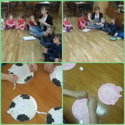 Grupa "Wiewiórek" z PM nr 231 odwiedziła dziś naszą bibliotekę. Podczas spotkania rozmawialiśmy o wiośnie na wsi. Wspólnie przeczytaliśmy i obejrzeliśmy książeczkę pt. "Życie na wsi". Jak się okazało dzieci z grupy IV świetnie znają wiejskie zwierzątka. Na zakończenie zajęć stworzyliśmy swoje własne krówki i świnki. Dziękujemy za przemiłe zajęcia i do zobaczenia jeszcze w kwietniu!