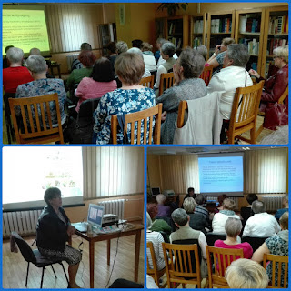 Nasza biblioteka w tym roku również wzięła udział w obchodach IV ŁÓDZKICH SENIORALIÓW. 17 maja Pani Jola Błądek poprowadziła prelekcję pt. "Żyj zdrowo i kolorowo". W bardzo przystępny sposób opowiedziała o aktywności i kulturze żywności ludzi starszych w różnych krajach. Nie obyło się bez dobrych rad,jak zachować w tym wieku sprawność fizyczną i psychiczną. Uzupełnieniem prelekcji były ciekawe zdjęcia. Oczywiście temat jak zawsze był niewyczerpany, a słuchacze chętnie zadawali pytania.