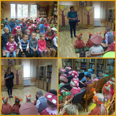 W poniedziałkowe przedpołudnie naszą bibliotekę odwiedziły dzieci z PM nr 231. Były to aż 3 grupy: "Żabki", "Ptaszki" i "Biedronki"! :) Przedszkolaki wystąpiły w przedstawieniu pt. Powitanie Jesieni. Każda z grup zaprezentowała krótkie scenki, dotyczące tej pory roku. Wszystkie występy były interesujące i każdy z nich został zakończony gromkimi brawami. Dziękujemy za przepiękne występy! :)