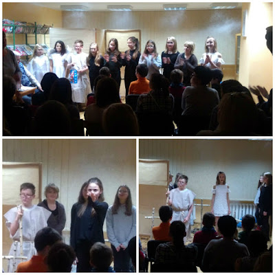 W miniony piątek, 1 grudnia, grupa teatralna ze Szkoły Podstawowej nr 184, prowadzona przez Pana Leszka Tomalę, wystawiła w naszej bibliotece przedstawienie pt. "Dziady. Część II". Na spektakl przybyła liczna grupa widzów. Publiczności bardzo spodobał się występ młodzieży, która była świetnie przygotowana aktorsko. Był to niesamowity wieczór! Występujących wielokrotnie nagradzano gromkimi brawami!