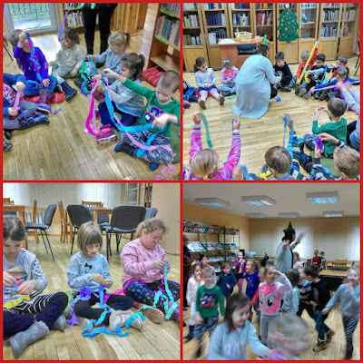 W mroźny czwartkowy poranek, naszą bibliotekę odwiedziła grupa XI z PM nr 231. Tematem naszego spotkania była CHOINKA. "Sarenki" wysłuchały krótkiego fragmentu opowiadania Franciszka Kobryńczuka pt. Wyprawa po choinkę. Później wspólnie wyruszyliśmy na wyprawę do lasu, gdzie przybraliśmy piękną choinkę. Na zakończenie zajęć każdy przedszkolak wykonał cudowny łańcuch na to świąteczne drzewko. Dziękujemy za pełne radości zajęcia! :)